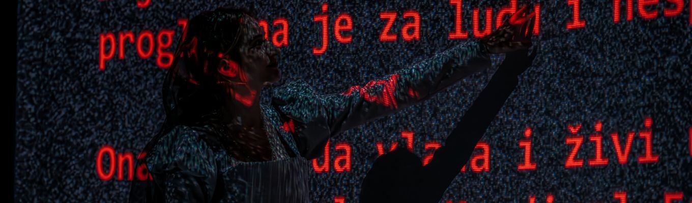 Kroz dijalog sa virtuelnim likom, glumica istražuje nove oblike prisustva, ranjivosti i glumačkog otpora, dok se pozorišna scena pretvara u psihološki i digitalni pejzaž.